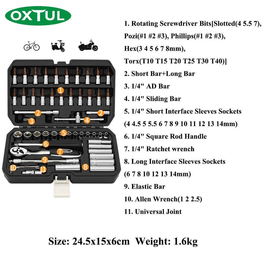 Addition Information of OXTUL 53PCS Professional Mechanical Auto Car Repair Tools Set Kit Socket Wrenches Ratchet Home Hous